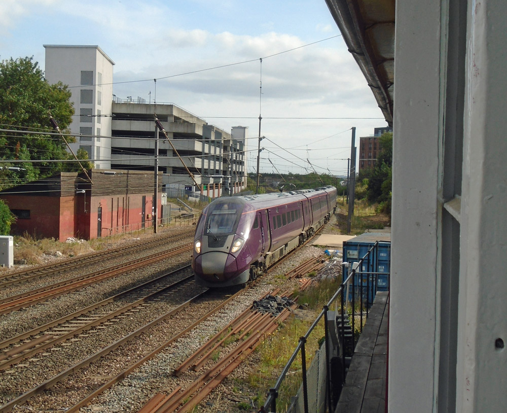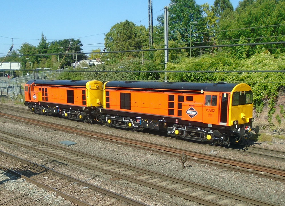 Regular weekend closures have been taking place to allow Network Rail to inprove the overhead wiring that supplies the trains with 25kVolts to power them. The two pictures below show various 'Road/Rail' vehicles during the operators' shift change: